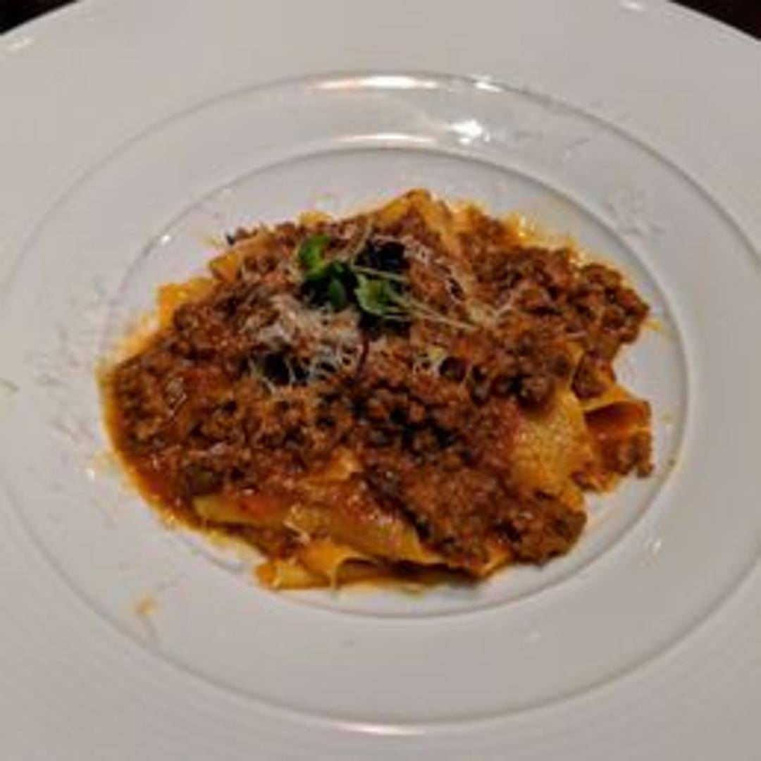 A beloved Italian classic featuring wide, flat pappardelle pasta generously coated in a rich, slow-simmered Bolognese sauce. This hearty ragù is traditionally prepared with a savory blend of ground meats, aromatic vegetables, and tomatoes, creating a deeply comforting and flavorful dish.