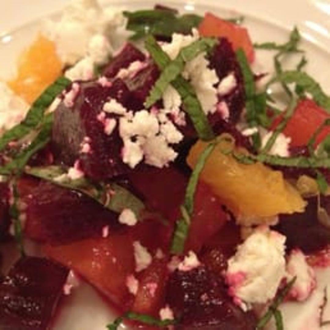 A vibrant and earthy salad featuring tender beets, thoughtfully marinated to enhance their natural sweetness and create a wonderfully yielding texture. This colorful dish typically combines the marinated beets with fresh greens, a complementary cheese like goat cheese, and a light, zesty dressing for a balanced flavor profile.