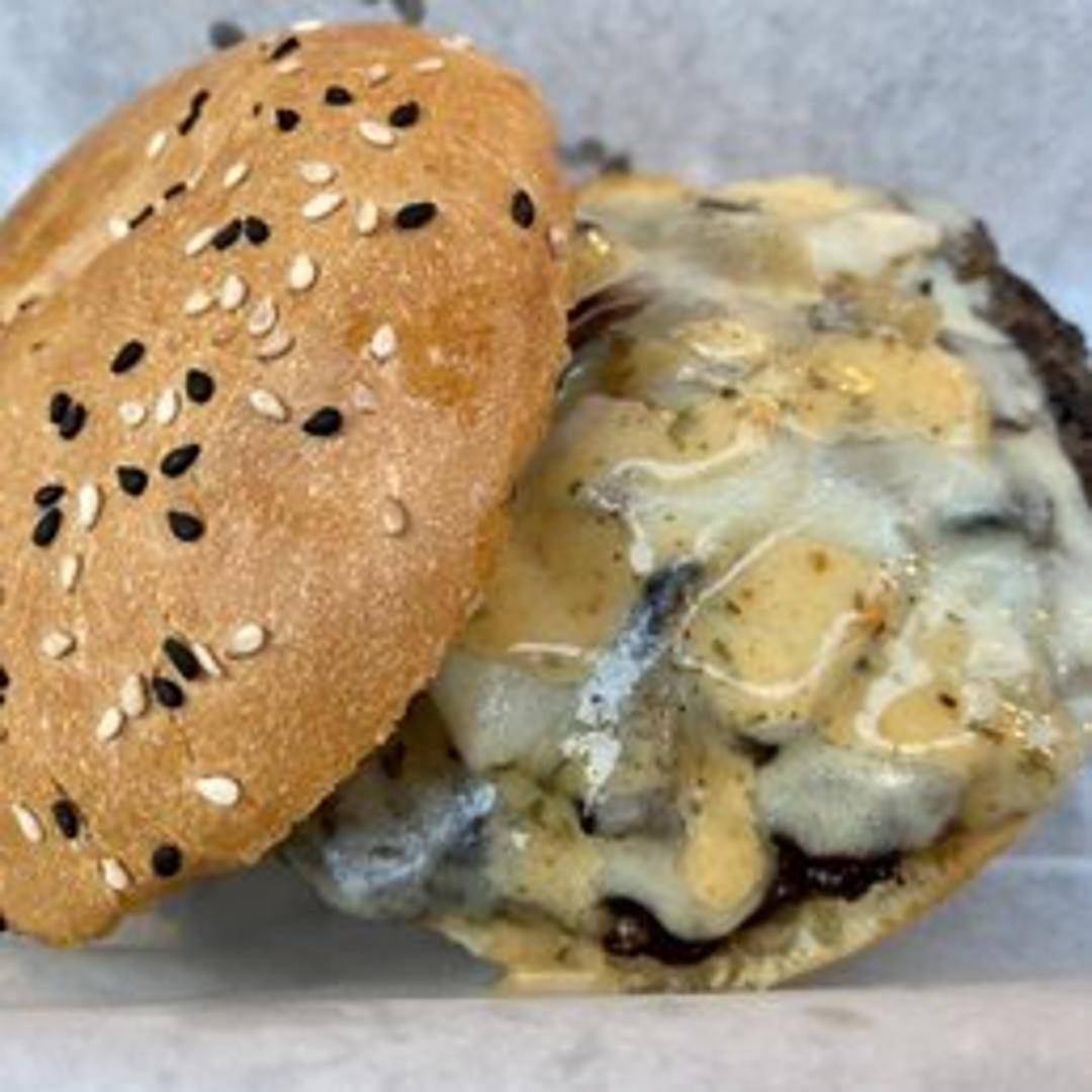 A juicy burger topped with sautéed mushrooms and melted Swiss cheese.