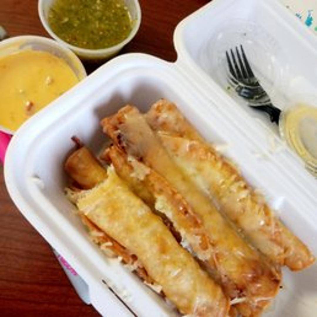 Crispy, hand-rolled corn tortillas filled with seasoned shredded chicken, served with your choice of dipping sauce, usually guacamole and/or sour cream.