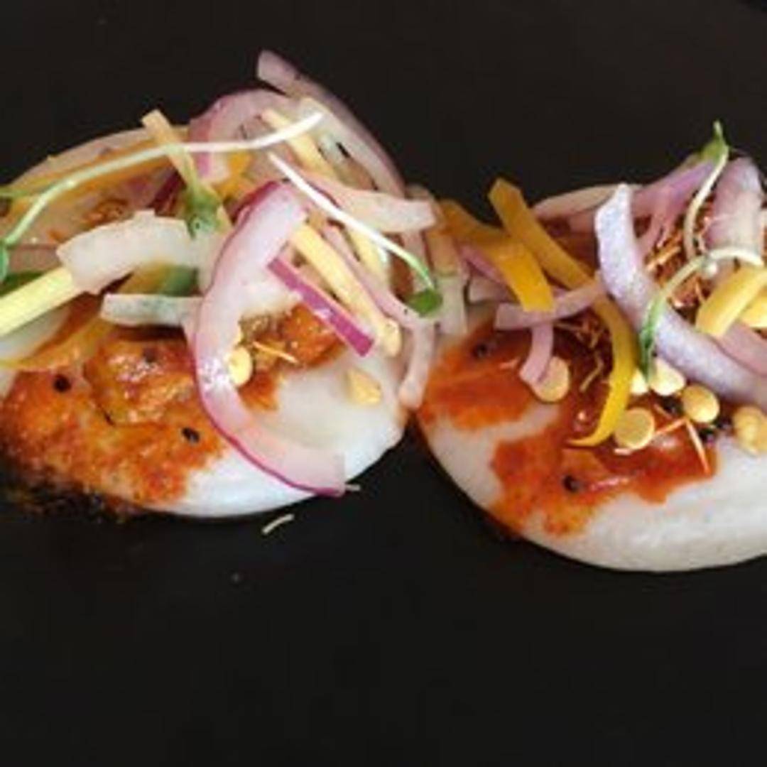 An innovative fusion dish combining Indian flavors with a Mexican-inspired format. Tender chicken is marinated in 'achari' (pickled) spices, offering a tangy and zesty kick, then generously folded into soft, flaky paratha 'taco' shells, creating a unique and delightful culinary experience.