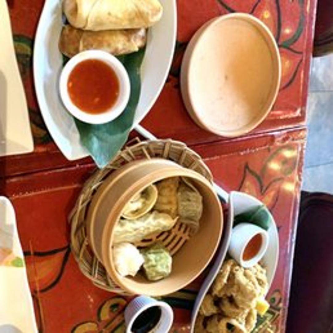 Crispy spring rolls filled with vegetables and served with a sweet chili dipping sauce.
