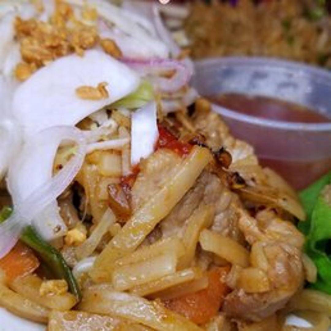 Classic Thai noodle dish with rice noodles, bean sprouts, scallions, egg, and ground peanuts in a tangy tamarind sauce. Your choice of protein (tofu, chicken, beef, pork, or shrimp).