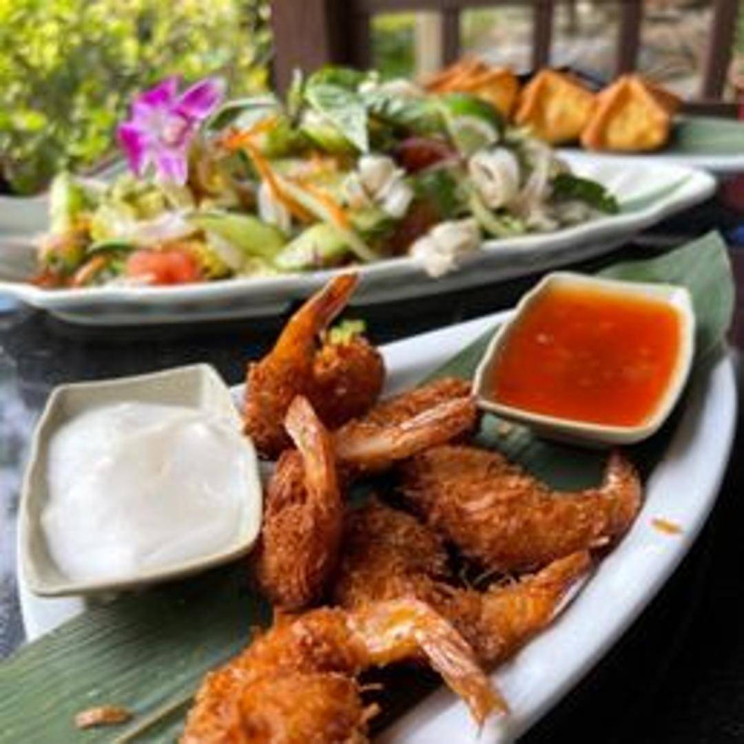 Crispy, golden-fried shrimp coated in shredded coconut. Served with a sweet and tangy dipping sauce.
