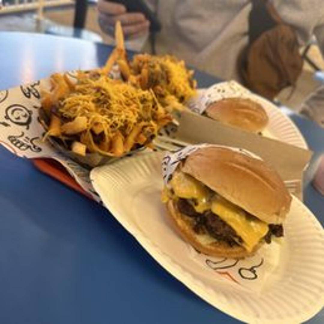 Two juicy beef patties stacked high on a toasted bun with crisp lettuce, ripe tomato, sliced onion, pickles, and Irv's special sauce.