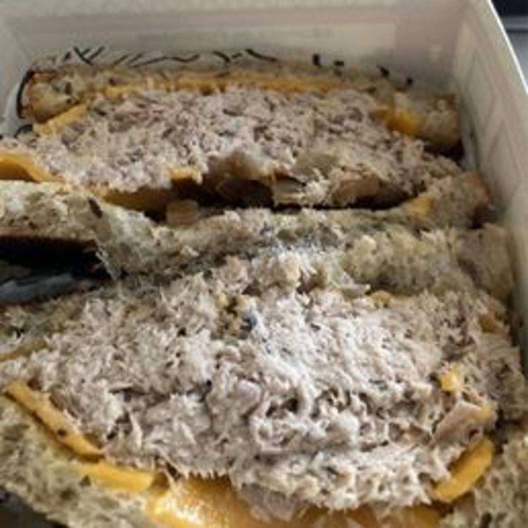 A classic tuna salad, made with high-quality tuna and creamy mayonnaise, grilled between slices of toasted bread with melted cheese. A comforting and flavorful alternative to burgers.