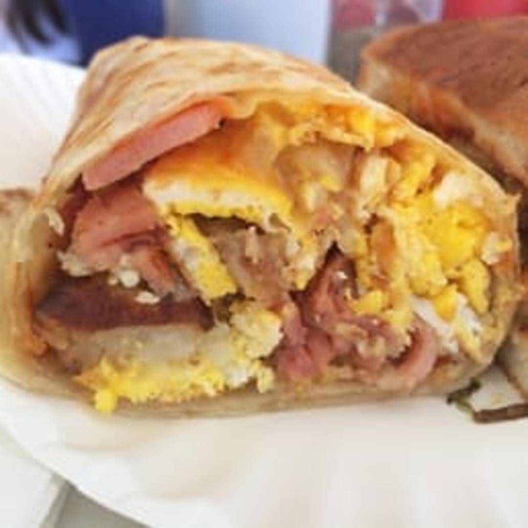 A warm tortilla filled with scrambled eggs, cheese, and your choice of bacon, sausage, or chorizo. Served with a side of salsa.
