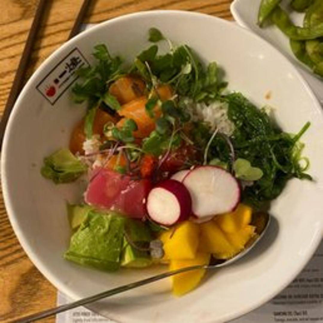 A vibrant and refreshing bowl filled with marinated raw fish (typically tuna or salmon), sushi rice, and an assortment of fresh toppings. Includes avocado, seaweed salad, edamame, cucumber, and a drizzle of our signature poke sauce. A healthy and customizable lunch or dinner option.