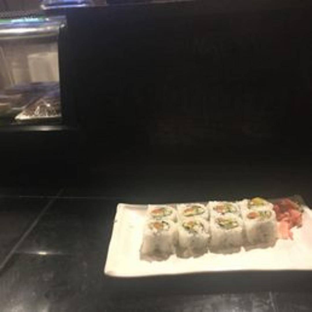 A wholesome and flavorful sushi roll packed with a delightful assortment of fresh, vibrant vegetables, such as avocado, cucumber, and carrots, alongside seasoned sushi rice, all neatly encased in crisp nori. An excellent option for a nutritious and satisfying plant-based meal.
