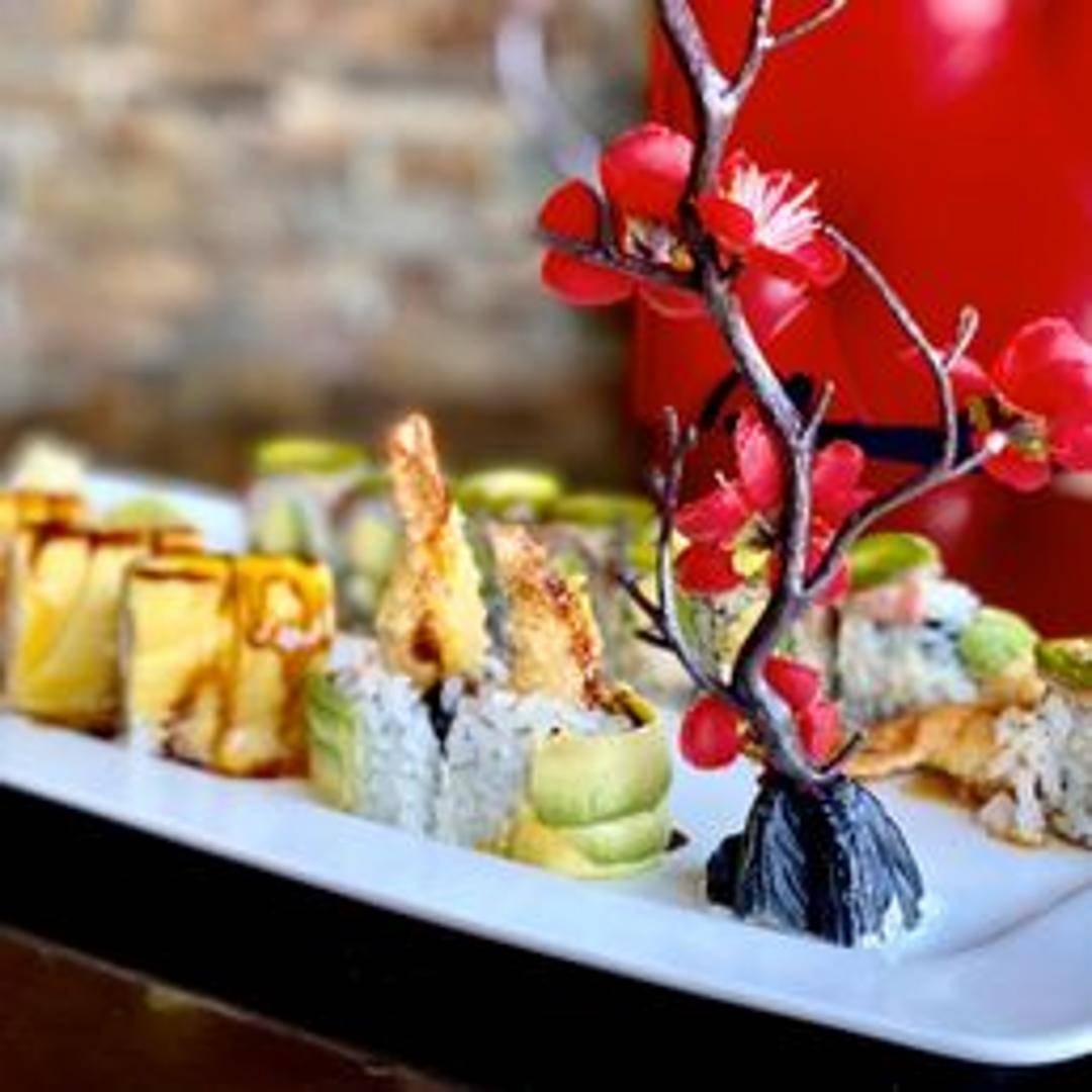 Sushi roll with fresh mango, cream cheese and sushi rice. Often contains other ingredients such as avocado, cucumber, or imitation crab.