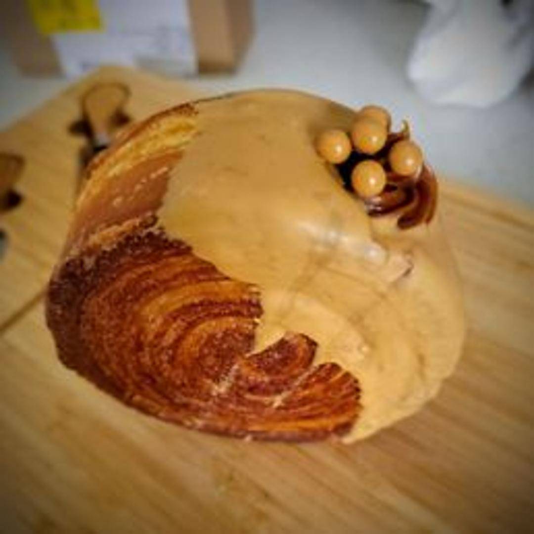 A flaky, laminated pastry, similar to a croissant, filled generously with creamy Dulce De Leche filling. Expect layers of buttery dough and a sweet, caramel-like filling.