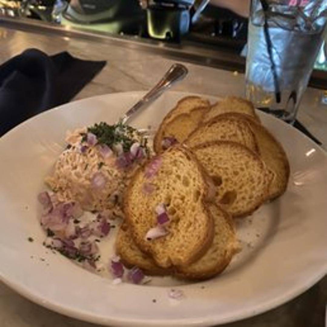 House-smoked salmon served with toast points, dill cream cheese, capers, red onions, and lemon wedges.