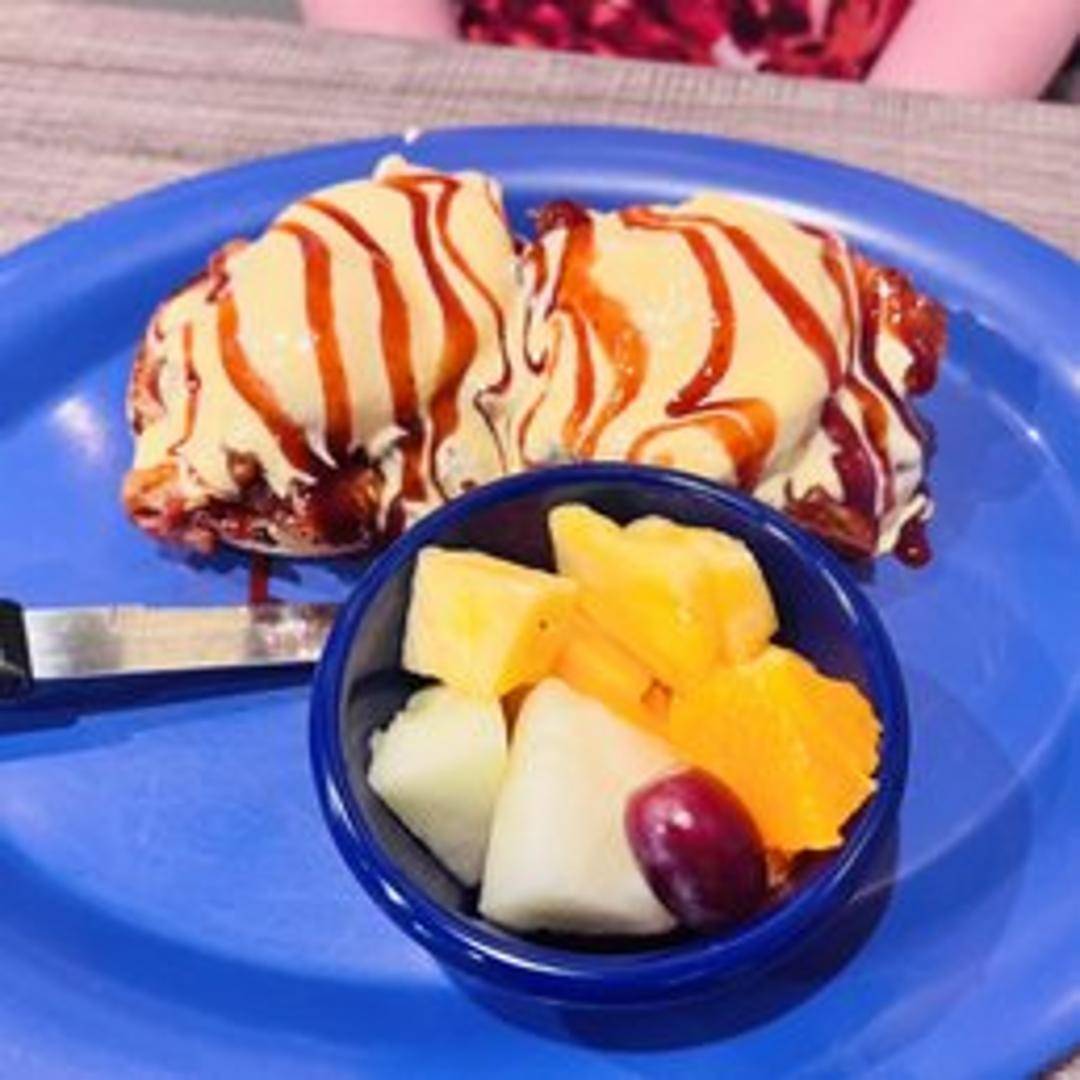 Two perfectly poached eggs atop toasted English muffins, layered with savory Canadian bacon and smothered in a rich, creamy hollandaise sauce. Served with a side of your choice: home fries, fruit salad, or grits.