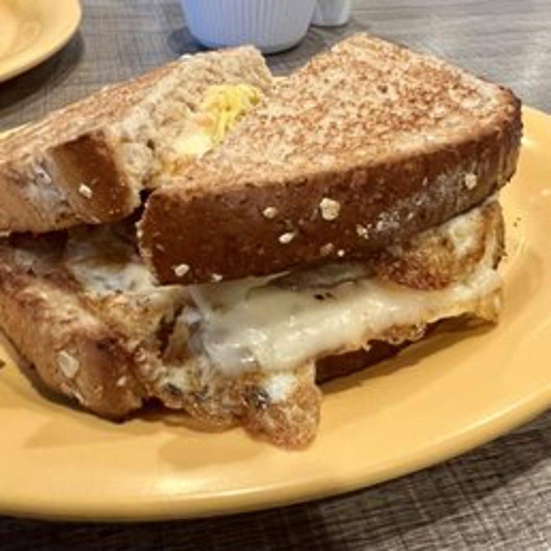 A classic breakfast sandwich featuring your choice of eggs (scrambled, fried, or over easy) and cheese (American, cheddar, or Swiss) served on a toasted bagel, English muffin, or croissant. Includes your choice of breakfast meat: bacon, sausage, or ham.