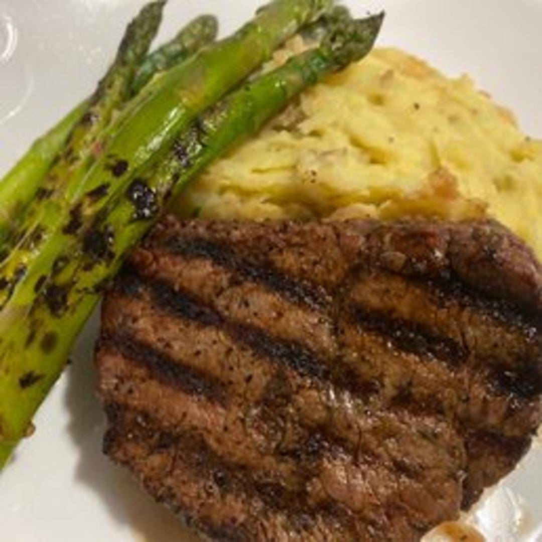 Fresh, vibrant green asparagus spears, lightly seasoned and expertly grilled to achieve a delicate smoky char and a tender-crisp texture, making it an ideal and flavorful accompaniment to any dish.