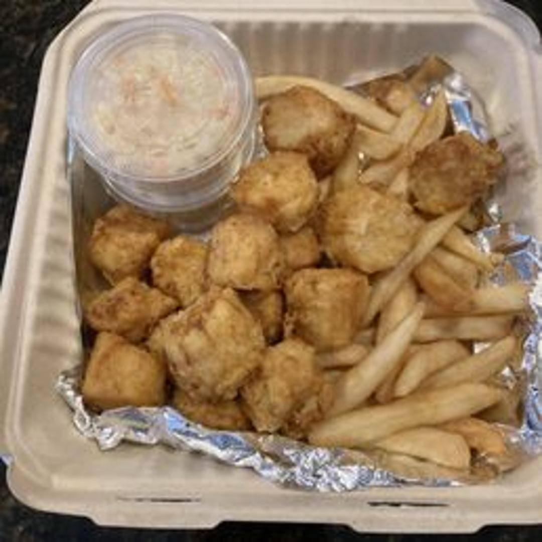 Fresh sea scallops, lightly battered and deep-fried until golden brown and tender. Served with your choice of side and tartar sauce.