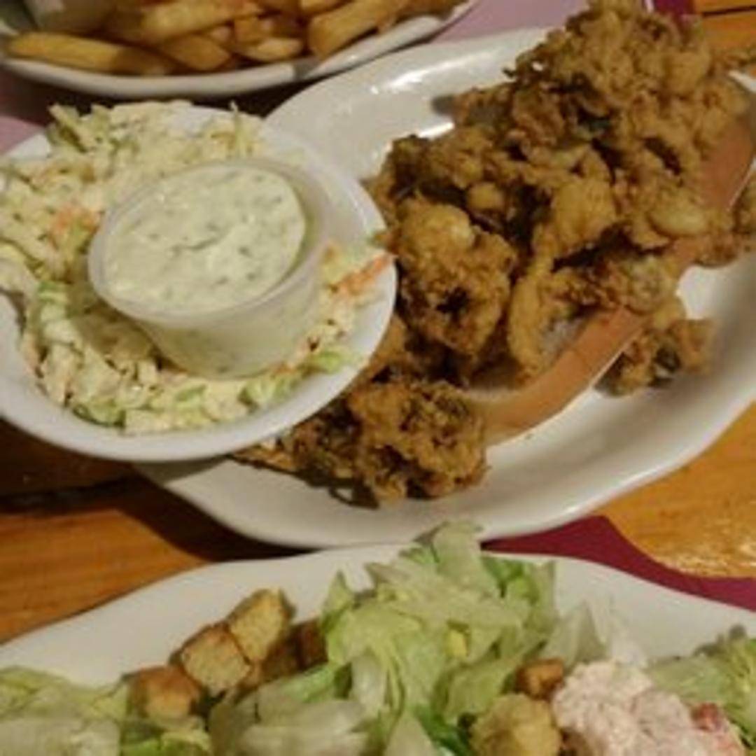 Fresh sea scallops, lightly battered and fried to a golden brown, served on a toasted roll with lettuce and tartar sauce. Includes a side of coleslaw and your choice of french fries, onion rings, or sweet potato fries.