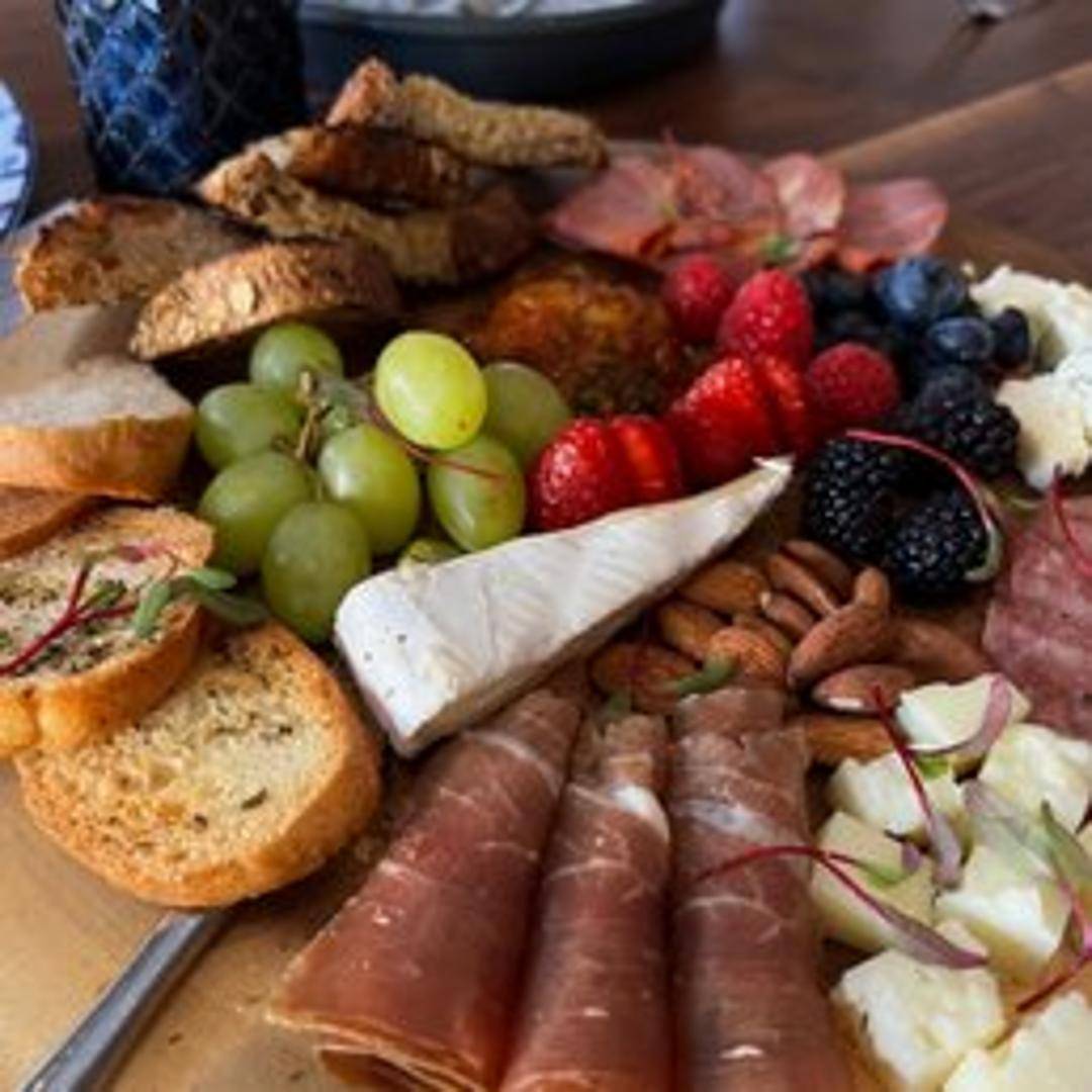 A selection of cured meats, cheeses, olives, and artisan bread.