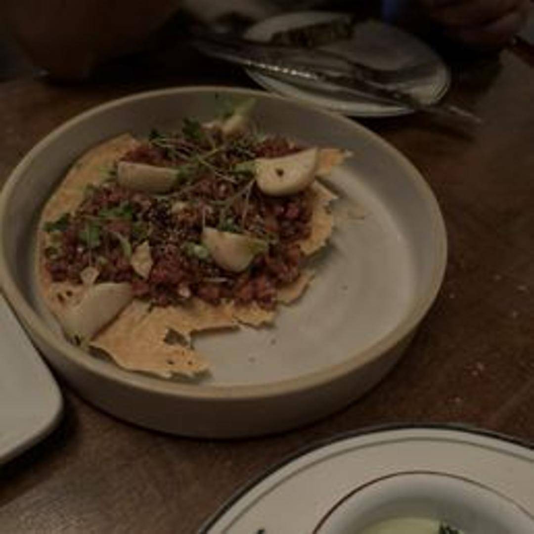 Finely chopped raw beef tenderloin, seasoned with capers, onions, parsley, Worcestershire, mustard and egg yolk. Served chilled, often with toast points or crostini.