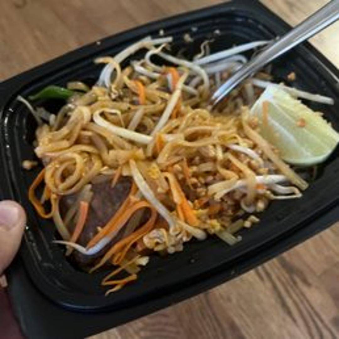 Rice noodles stir-fried with your choice of protein (tofu, chicken, pork, beef, or shrimp), egg, bean sprouts, green onions, and peanuts in a tangy tamarind sauce. Topped with crushed peanuts and lime wedge.