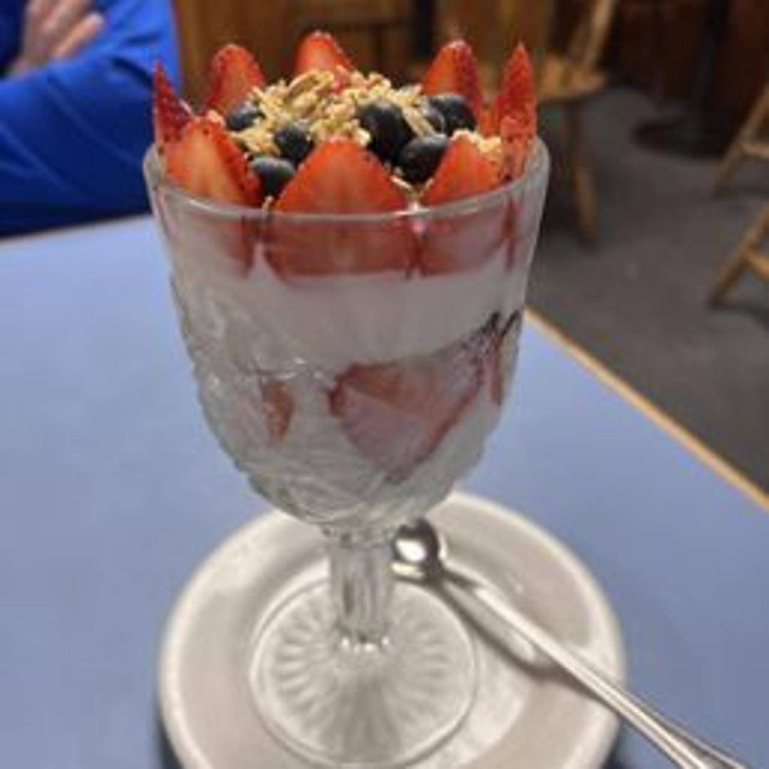 A delightful parfait layered with creamy, low-fat vanilla yogurt, a medley of fresh seasonal berries including strawberries, blueberries, and raspberries, and a sprinkle of crunchy granola. Perfect for a light and refreshing breakfast or snack.