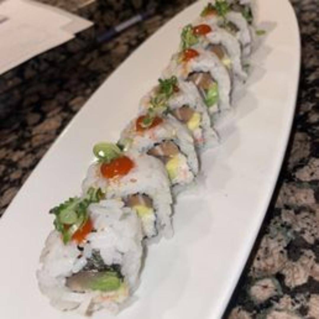 A large roll featuring a variety of fresh seafood and flavorful ingredients. Details on specific fish and components are available upon request.