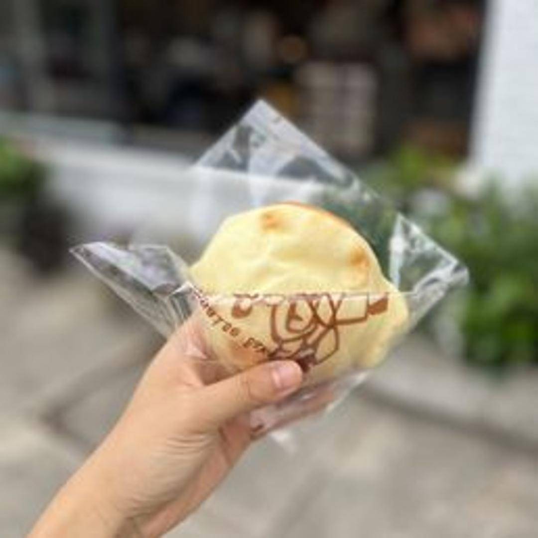 A soft and fluffy sweet bun filled with a generous portion of sweetened adzuki red bean paste and light, whipped cream. The airy bun complements the sweet and slightly earthy filling, making it a delightful treat.