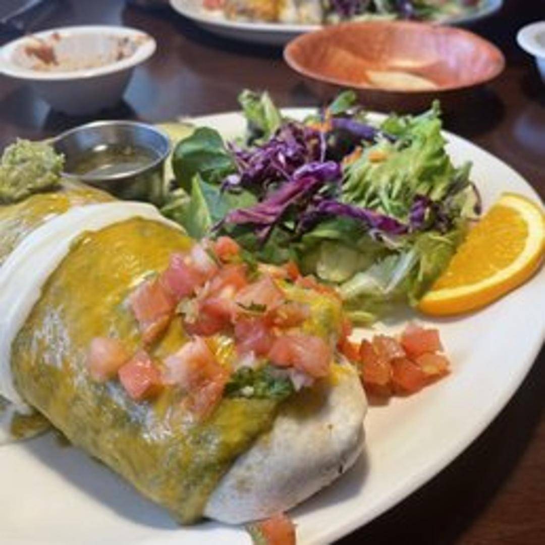 A warm flour tortilla filled with grilled steak, beans, rice, and your choice of salsa.
