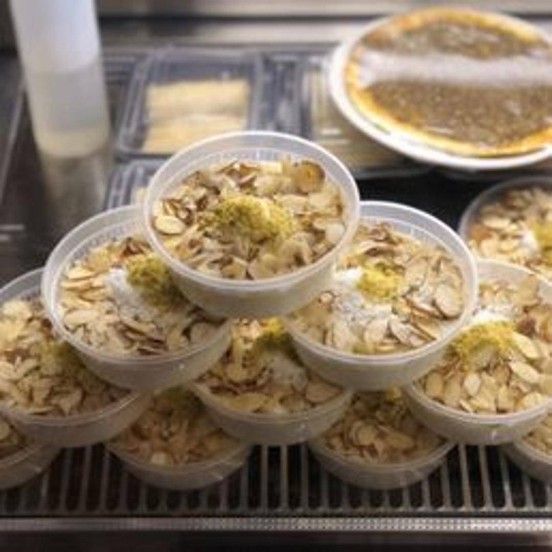 A classic Middle Eastern milk pudding, delicately flavored with rosewater or orange blossom water and often garnished with pistachios.