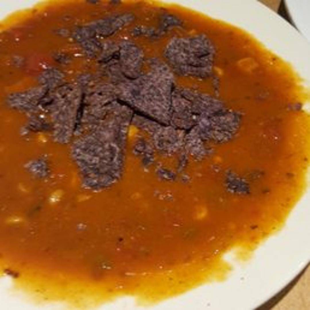 A hearty and flavorful soup featuring fire-roasted tomatoes, corn, and spices, topped with crispy tortilla strips. This soup offers a smoky and slightly spicy kick, making it a delicious and Southwestern-inspired choice.
