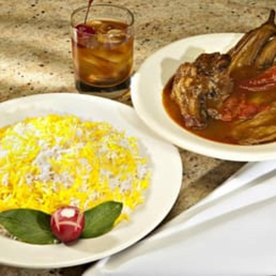 A traditional Persian stew featuring tender pieces of sautéed eggplant slow-cooked in a rich tomato-based sauce, often with succulent lamb or beef (or a vegetarian option available upon request). This flavorful stew is delicately seasoned with aromatic spices and a hint of sour grape or lemon juice, creating a harmonious blend of savory and tangy notes. Served piping hot, it's a comforting and authentic choice.