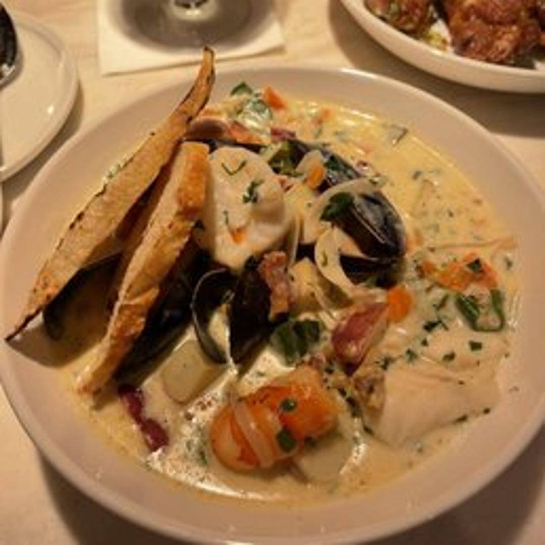A creamy and hearty soup filled with a variety of seafood, potatoes, and vegetables. Often flavored with herbs and spices.
