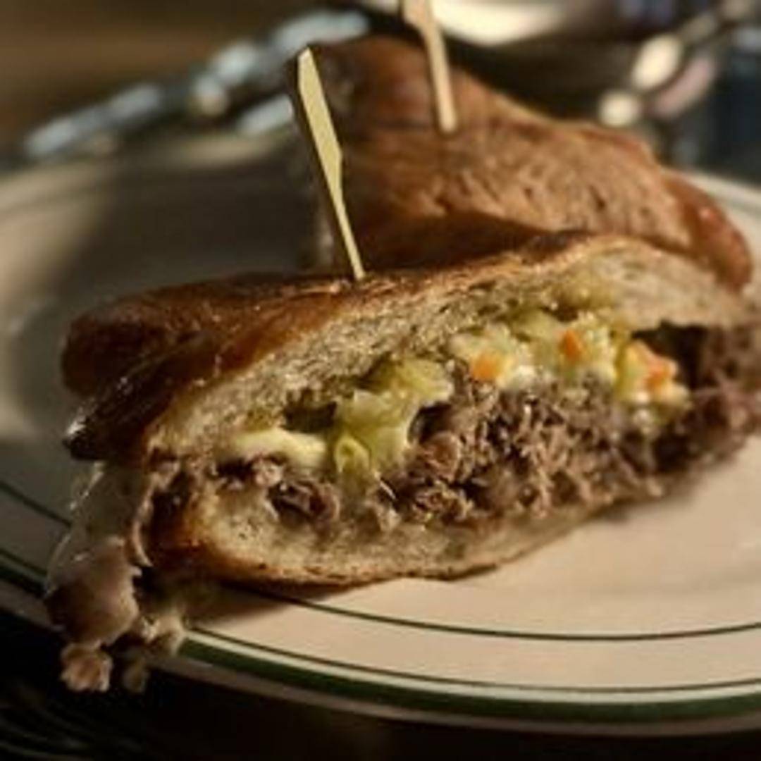 A hearty sandwich featuring tender, seasoned beef piled high on a long roll. Includes melted provolone cheese, lettuce, tomato, onion, and a tangy house dressing.