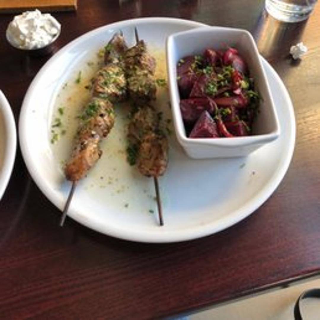 Tender pieces of marinated chicken, skewered and grilled to perfection. Served with your choice of dipping sauce and a side of rice or pita bread.