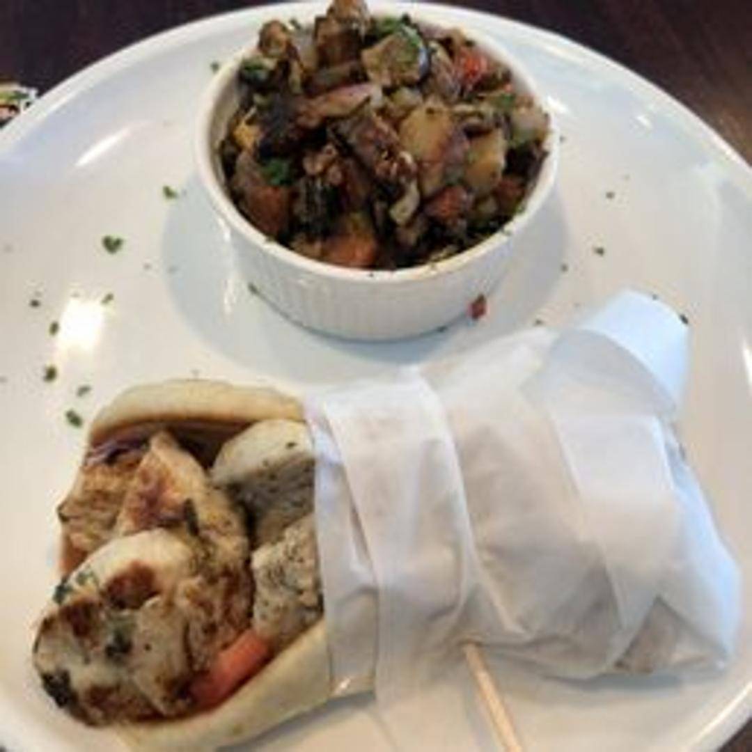 Savory, seasoned chicken, slow-cooked on a vertical rotisserie and thinly sliced. Served in a warm pita bread with fresh tomatoes, onions, and creamy tzatziki sauce.