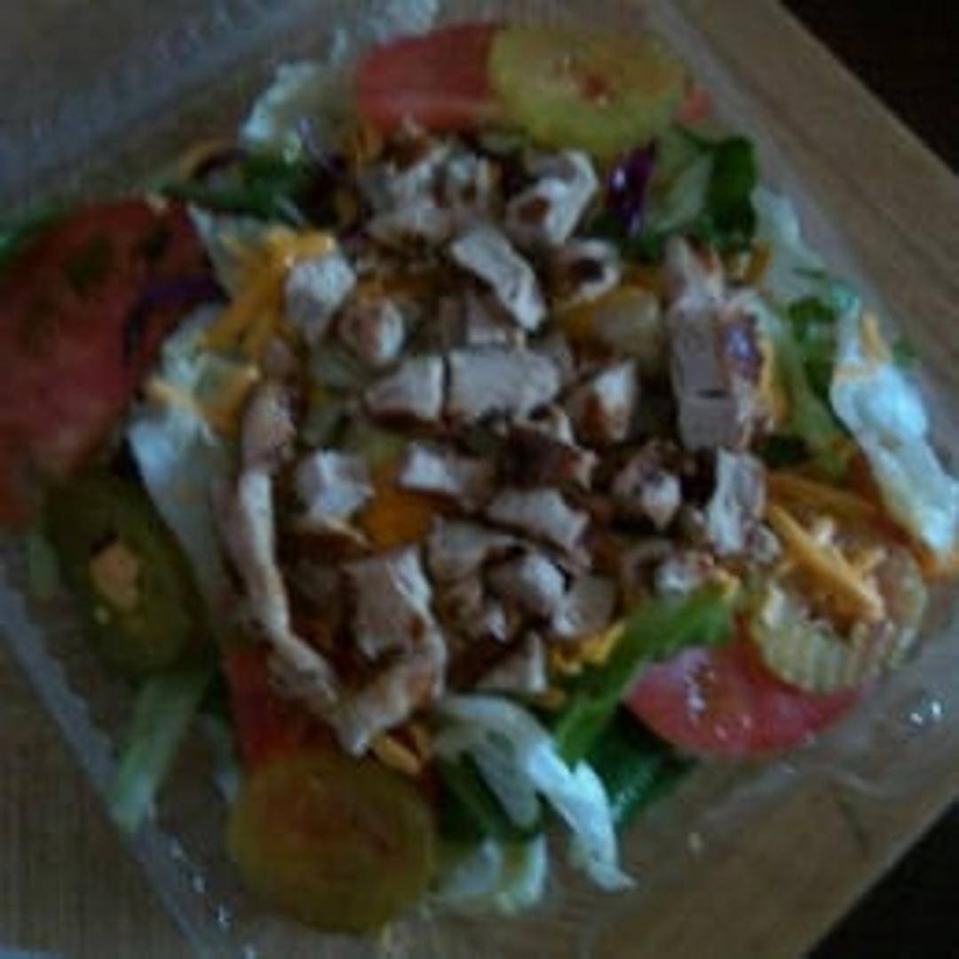 Tender grilled chicken breast served atop a bed of crisp mixed greens with sliced tomatoes, cucumbers, shredded carrots, and your choice of dressing.