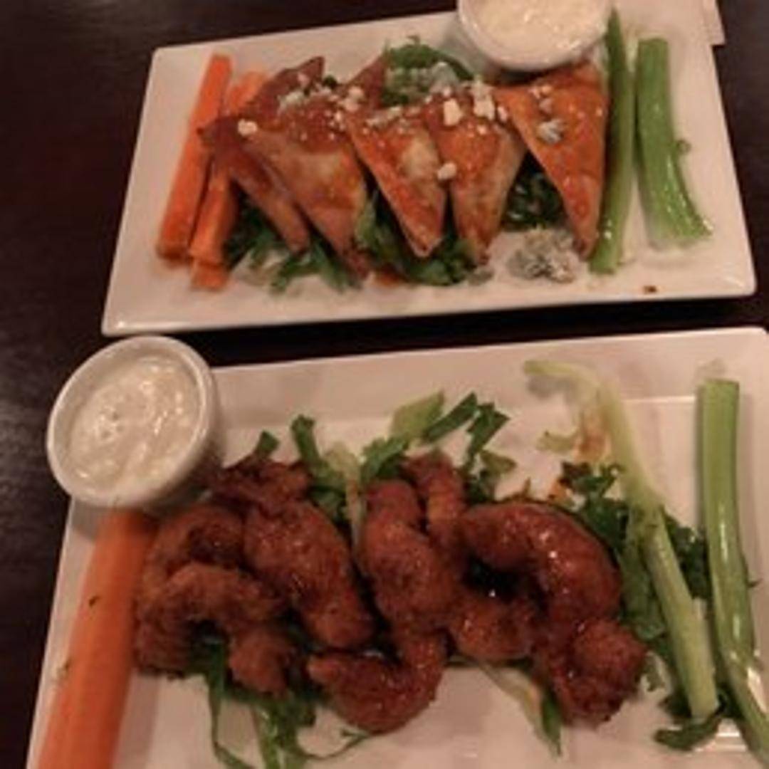 Crispy wonton wrappers filled with a creamy blend of shredded chicken, tangy buffalo sauce, and melted cheeses. Served with a side of blue cheese dressing for dipping.