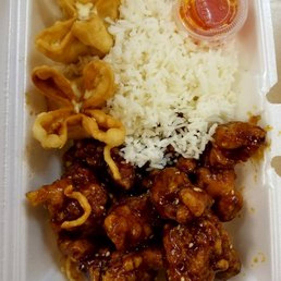 Bite-sized pieces of crispy, deep-fried chicken tossed in a tangy and sweet orange-flavored sauce. The sauce is made with orange juice, sugar, vinegar, soy sauce, and other seasonings, providing a bright and citrusy flavor. Often garnished with orange zest.