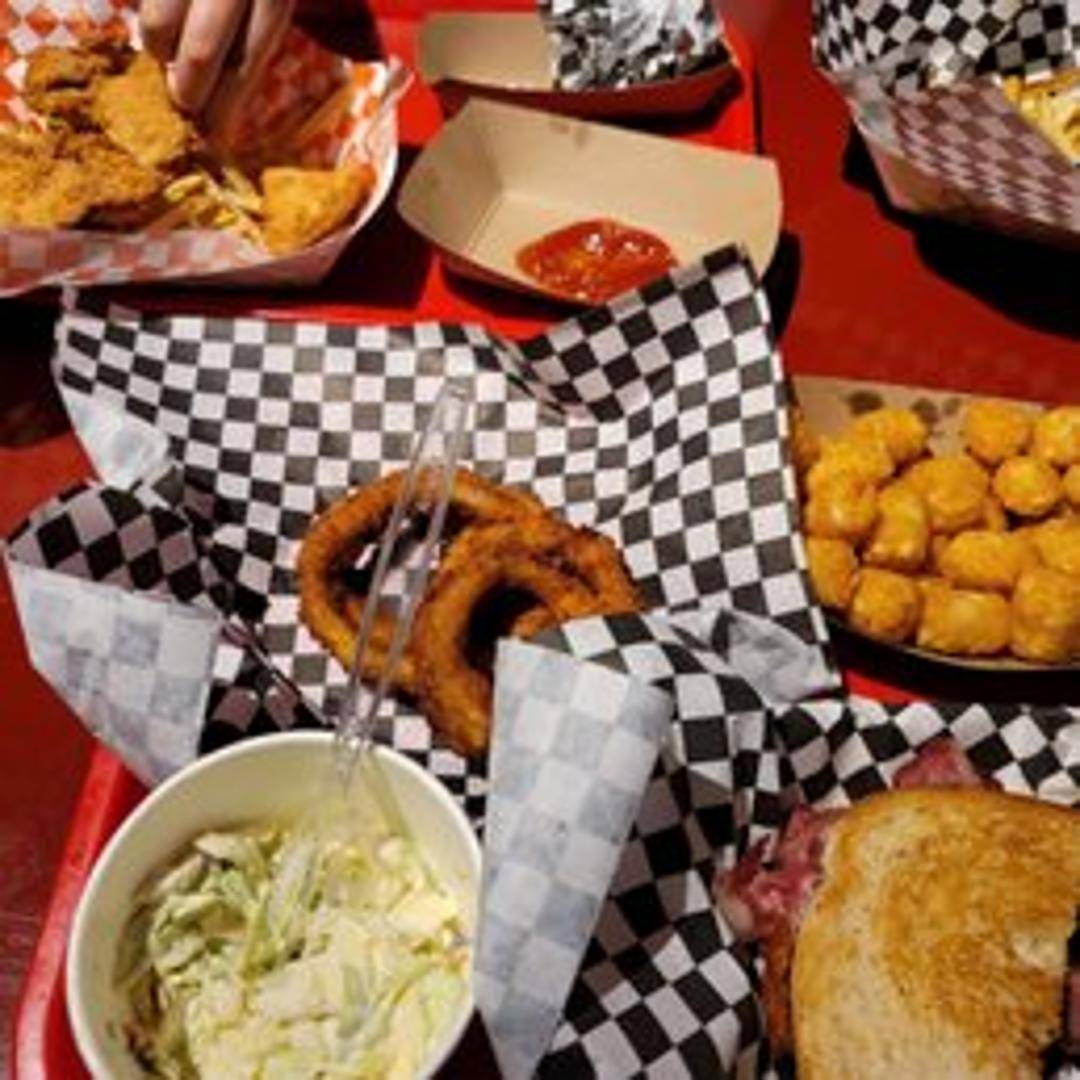 Thinly sliced, seasoned pastrami piled high on rye bread, served with mustard.