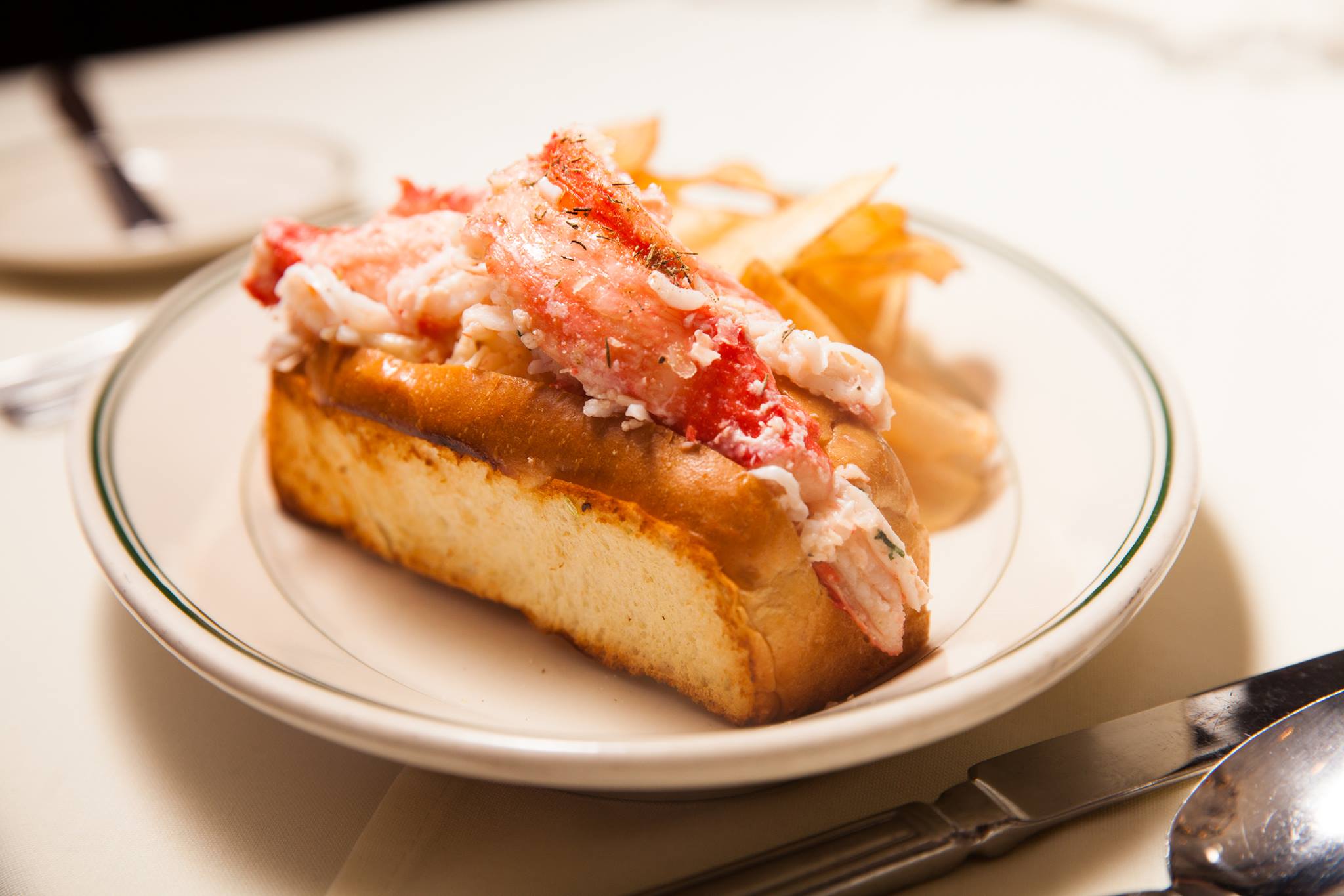 A luxurious roll featuring generous portions of sweet, flaky Alaskan King Crab meat, delicately dressed and served in a toasted bun, offering a taste of the ocean's finest in a satisfying format.