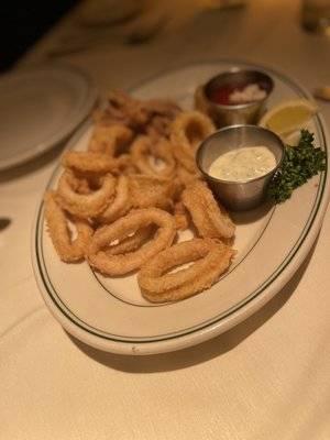 A classic appetizer, our Fried Calamari features delicate rings of fresh squid lightly breaded and fried to a crisp, golden perfection. Served piping hot, this beloved dish is accompanied by a complementary dipping sauce, perfect for sharing.