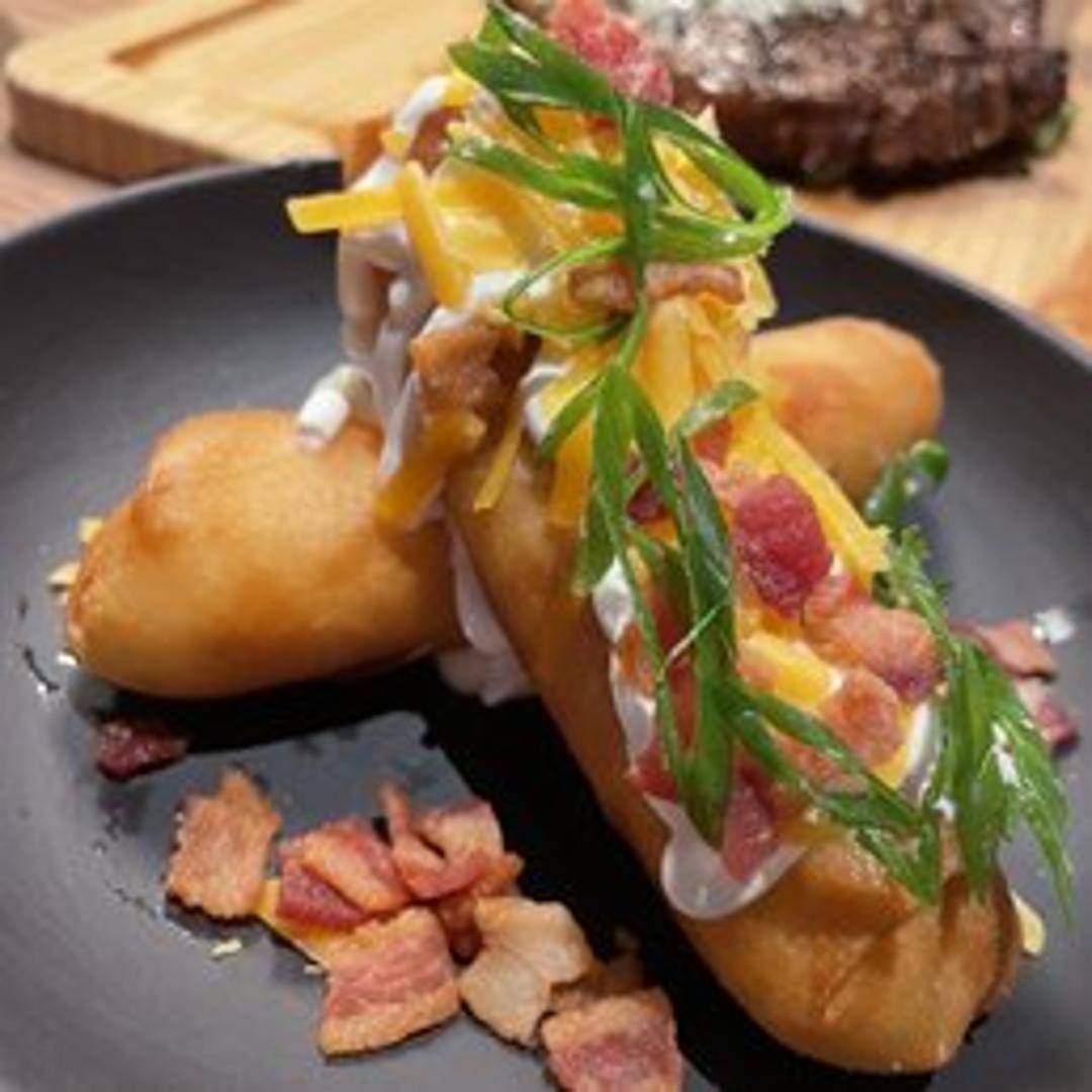 An inventive take on traditional mashed potatoes, transforming them into a delightfully textural side dish. Creamy and fluffy mashed potatoes are prepared to achieve a golden-brown, crispy exterior, offering a satisfying contrast between the tender interior and the pleasing crunch of the crust. A gourmet twist on a comforting classic.