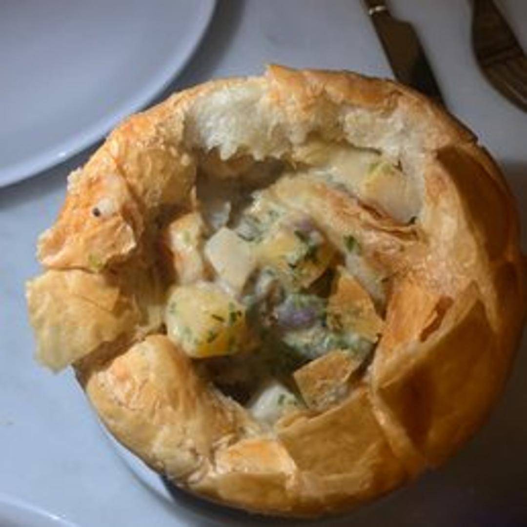 A medley of seasonal vegetables encased in a flaky, buttery pastry crust. A vegetarian main course or substantial side dish.