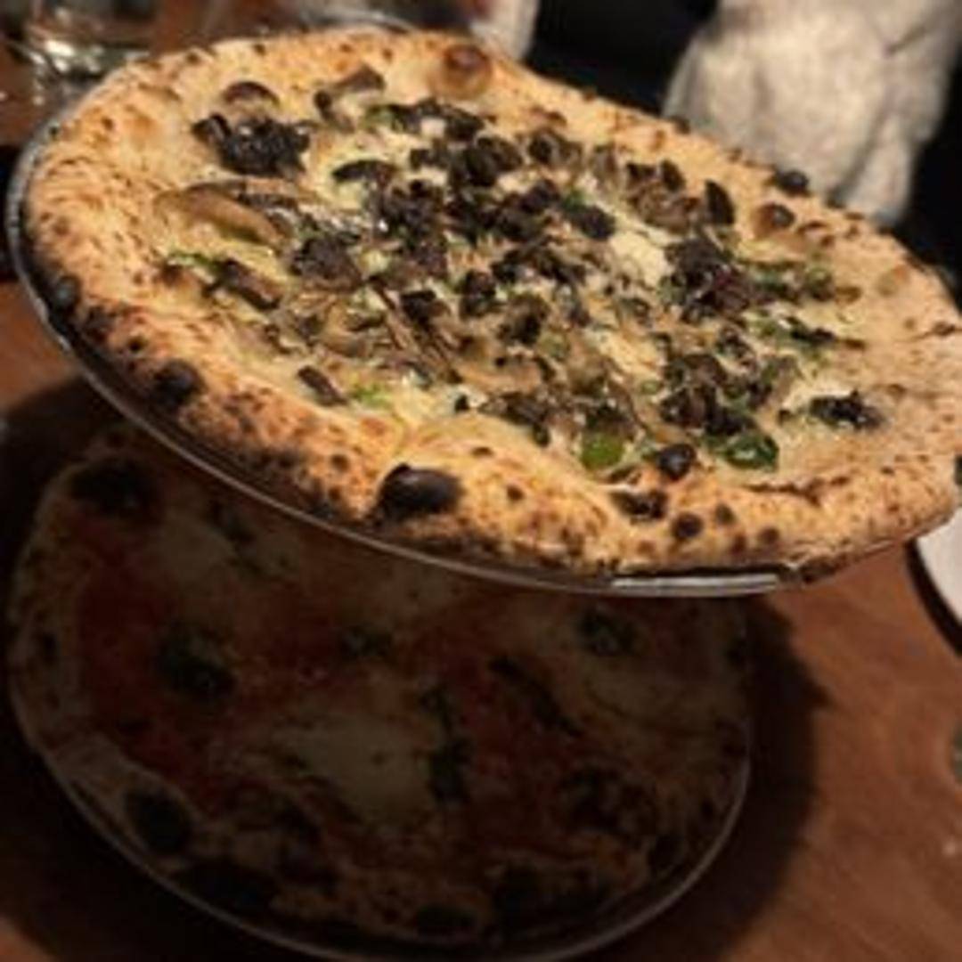 A 12-inch pizza covered in a variety of sautéed mushrooms, garlic, herbs, and a blend of cheeses on a thin crust.