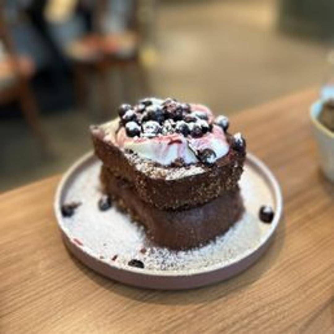 Thick slices of bread coated in panko breadcrumbs and fried to a golden crisp. Served with a sweet syrup.
