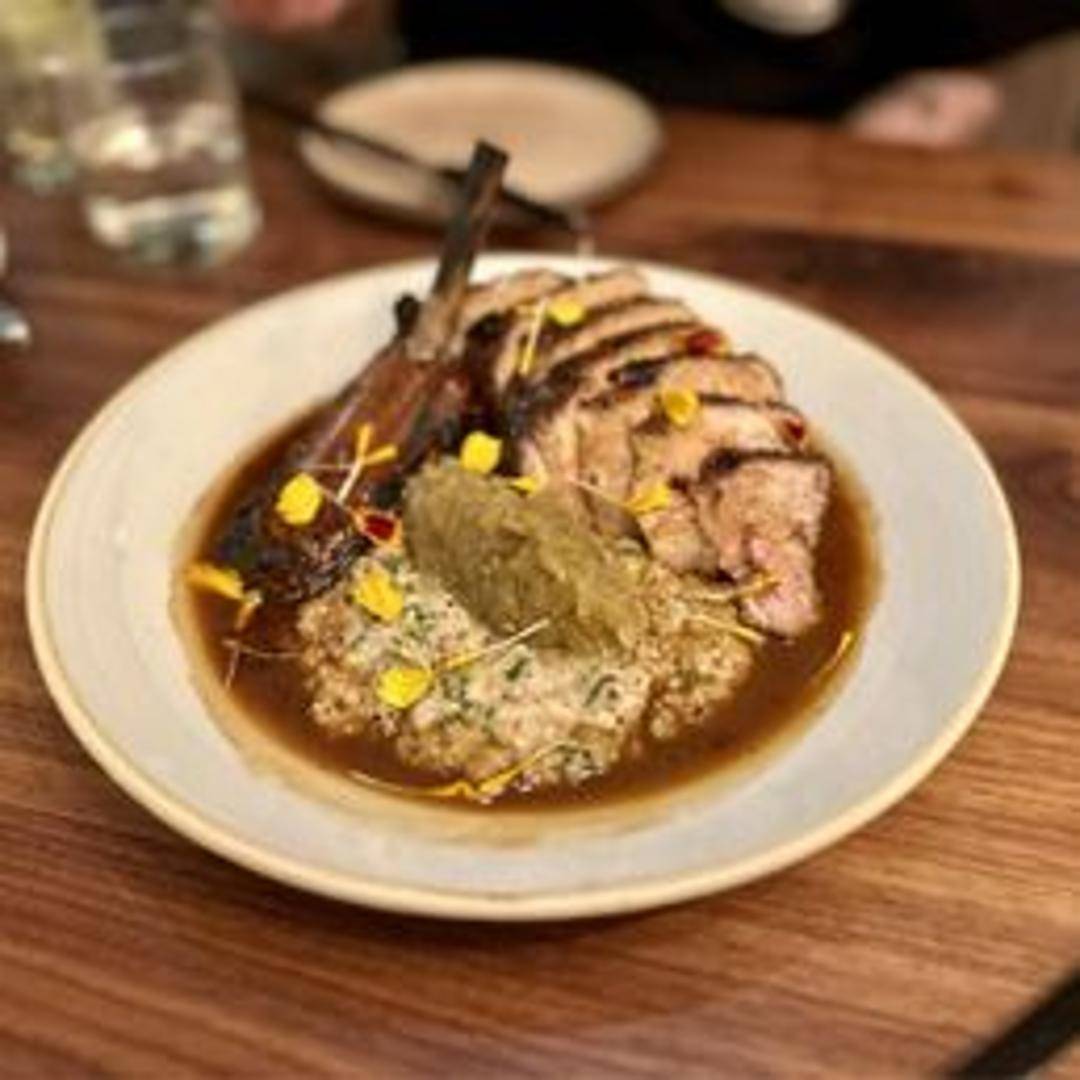 A massive 20-ounce Tomahawk pork chop, slow-smoked over hickory wood for a deep, smoky flavor. Expect a tender, juicy chop with a beautiful smoke ring. Served with complimentary side dish.