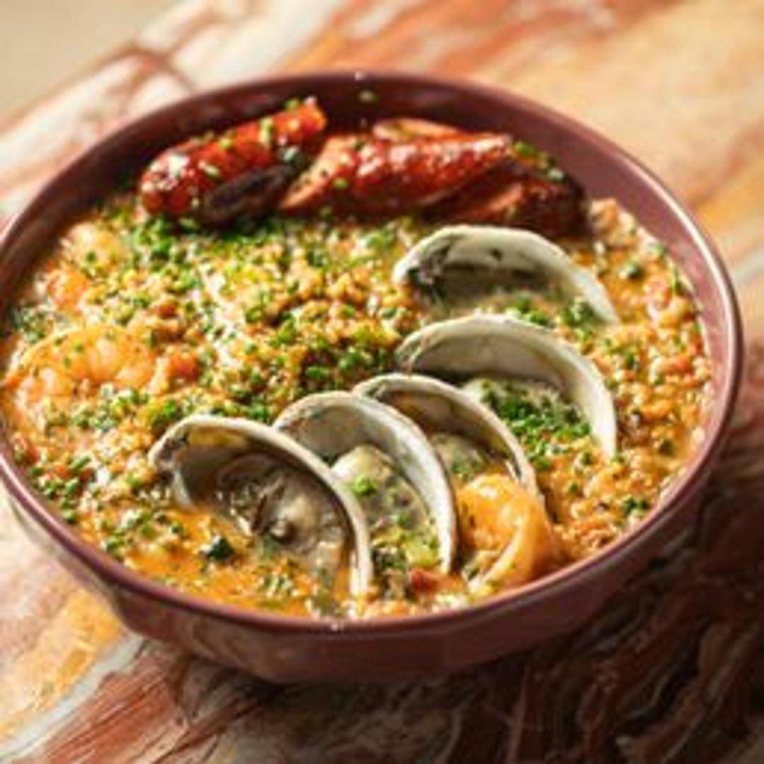 A flavorful rice dish featuring succulent Black Tiger prawns and fresh oysters, simmered with savory herbs, vegetables, and a touch of spice. A Lowcountry classic with a delightful seafood twist.
