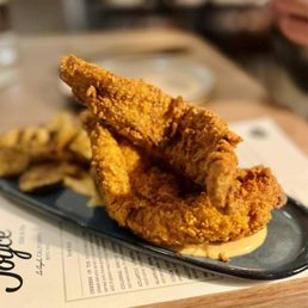 Crispy fried catfish tossed in Nashville hot seasoning, served on a soft roll with slaw and pickles. A spicy and satisfying sandwich.