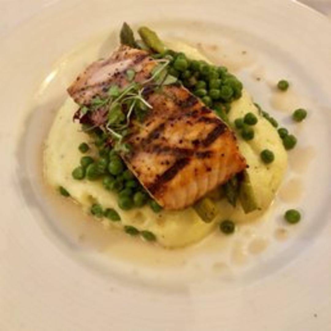 Fresh Atlantic salmon fillet, grilled and lightly seasoned. Served with chef's choice of seasonal accompaniments.