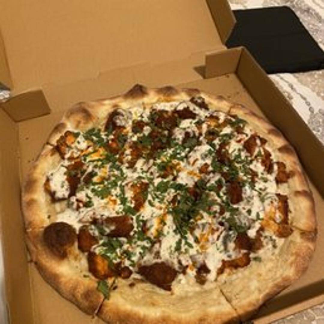 Spicy and flavorful pizza topped with grilled chicken tossed in buffalo sauce, mozzarella cheese, and a drizzle of ranch dressing.